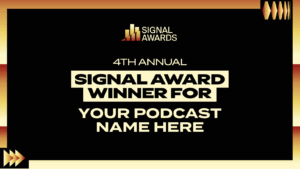 Congratulations on being names a 2025 Signal Award Winner! Now it’s time to share the news with your fans and friends. Get started by adding your show art to the customizable templates below, and download a Winner badge for your newsletter, LinkedIn and social channels.